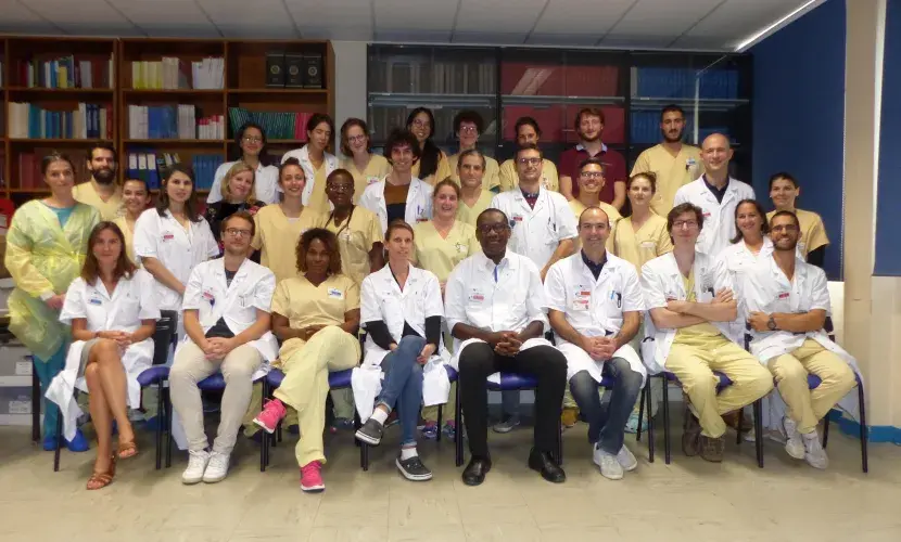 L’équipe paramédicale se relaie en 12 heures auprès des patients afin d’assurer une prise en charge en continu. La nuit et le week-end un médecin réanimateur, un interne, et un externe sont présents au sein du service. Les secrétaires médicales peuvent être sollicitées pour obtenir des renseignements, documents administratifs, compte rendu d’hospitalisation ou dossier médical. Un assistant social est également à votre disposition afin de vous aider dans vos démarches administratives. N’hésitez pas à le contacter.