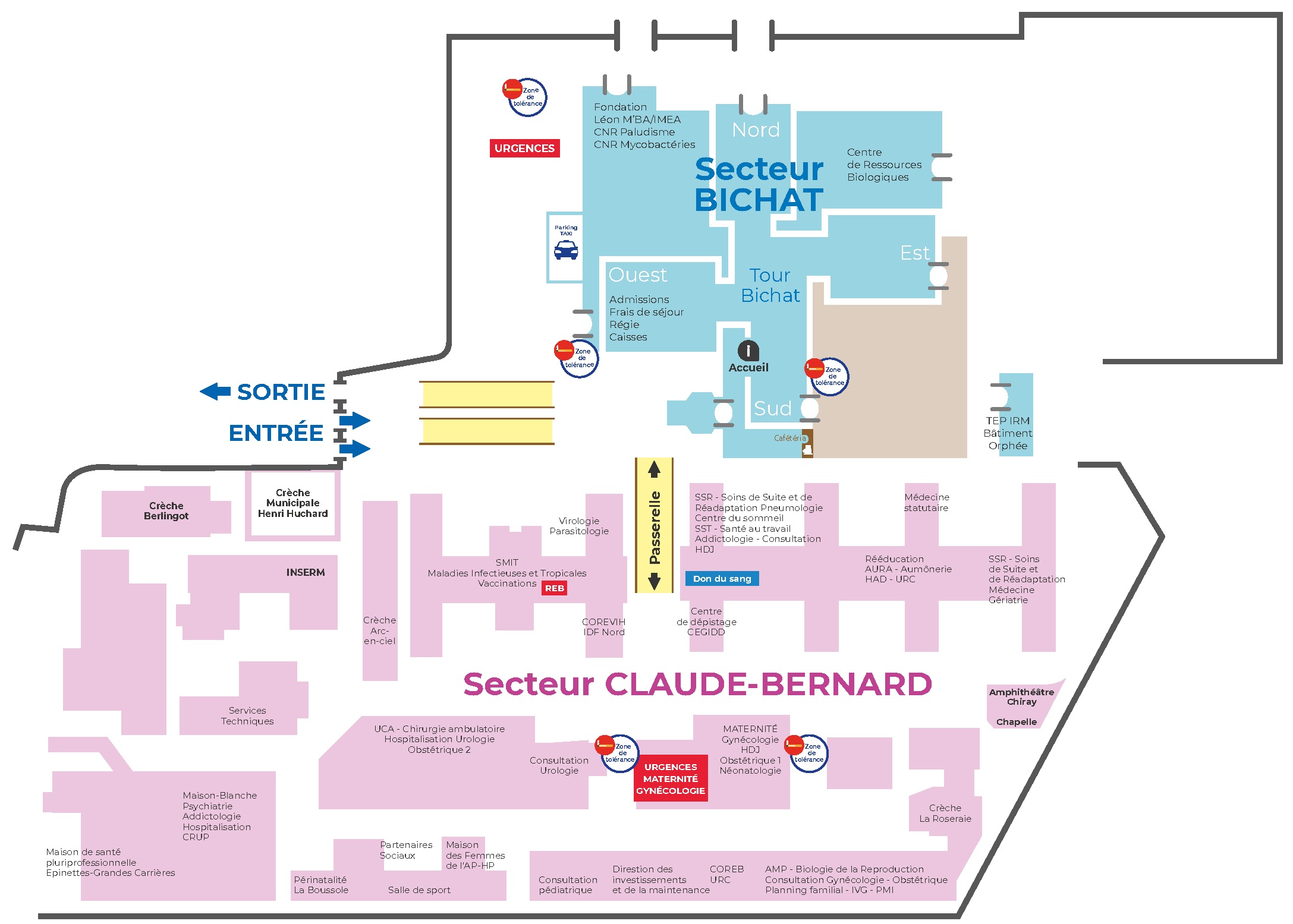 Situé dans le 18ème arrondissement de Paris, l’hôpital Bichat – Claude-Bernard a une double vocation, il assure :- Une mission de proximité qui répond aux besoins de la population adulte du nord parisien et francilien, avec l’un des plus importants Service d’Accueil des Urgences de l’agglomération parisienne. Le territoire de santé de l’hôpital couvre les arrondissements du 17 ème, 18ème et 19ème à Paris et la commune de Saint-Ouen.