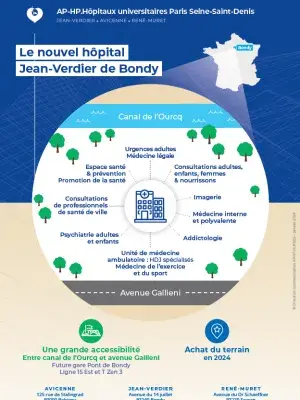 L’AP-HP a signé l’acquisition du terrain sur lequel sera construit le Nouvel Hôpital Jean-Verdier à Bondy. Il a une superficie de près de 10 000 m2 et permettra à ce grand projet architectural de 17 000 m2 de voir le jour en 2029.