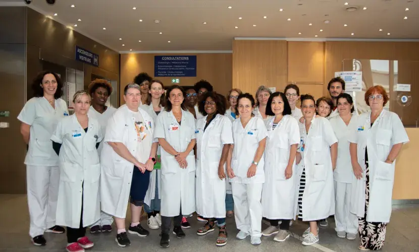 Le service est composé d’une équipe pluridisciplinaire composé d’endocrinologues, oncologues, radiologues, néphrologue, rhumatologue, infirmières de coordination, psychologue et diététicienne.