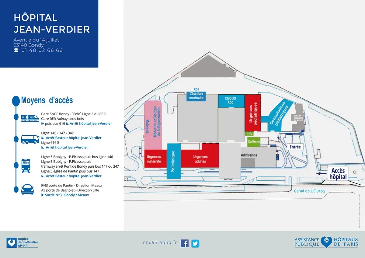 Le standard de l'hôpital est joignable 7 jours sur 7, 24h sur 24 au 01 48 02 66 66